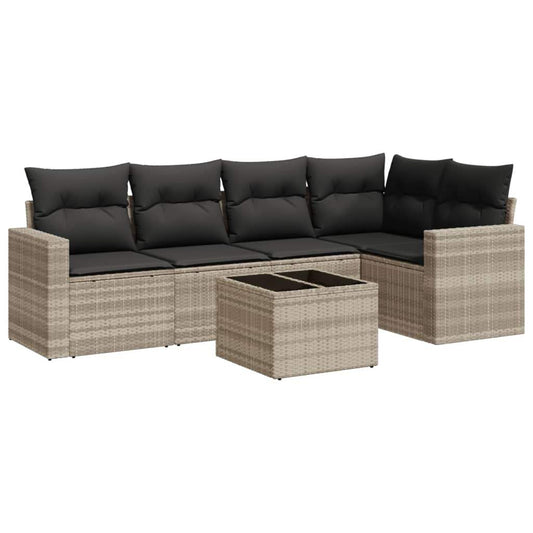 Set Divano da Giardino 6pz con Cuscini Grigio Chiaro Polyrattan
