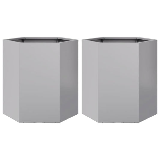 Fioriere da Giardino 2 pz Esagono 46x40x45cm Acciaio Zincato