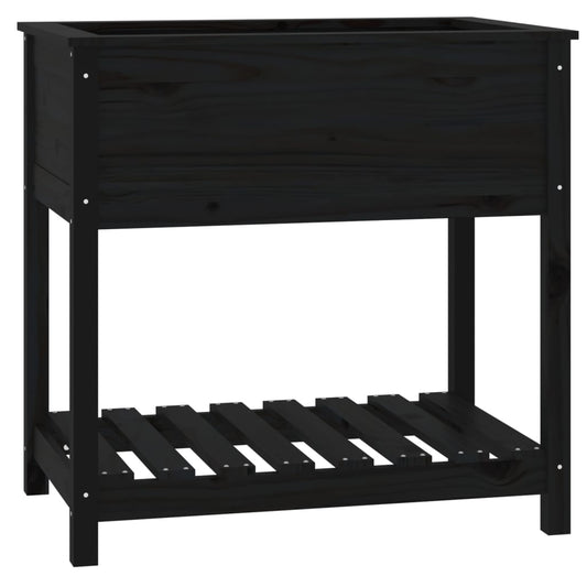 Fioriera con Mensola Nera 82,5x82,5x81cm Legno Massello di Pino