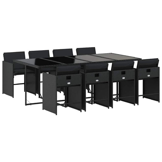 11 pc Garden Dining Set with Black Polyrattan Cushions