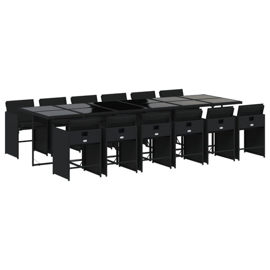 13pc Garden Dining Set with Black Polyrattan Cushions