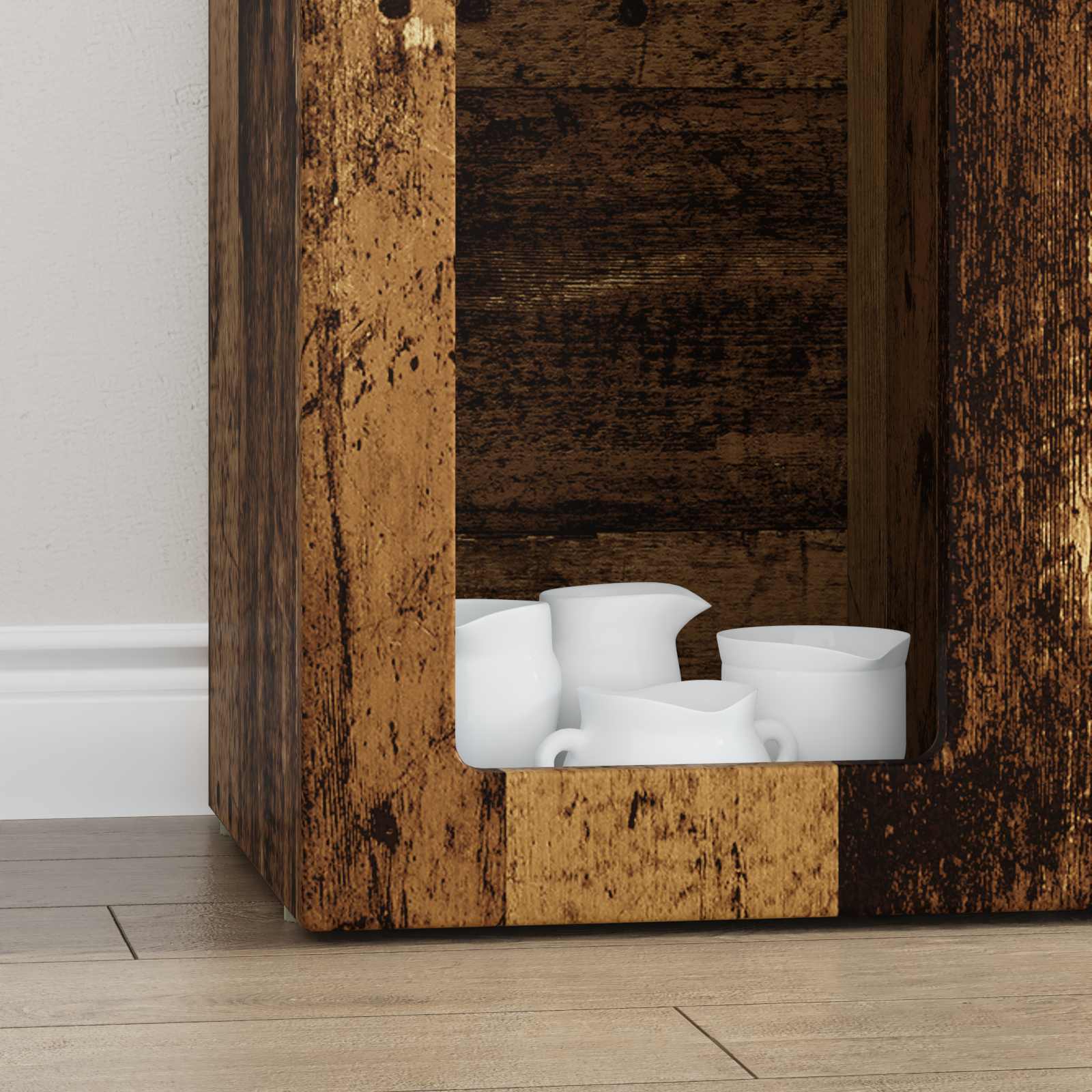 - Componenti inclusi: Il design è pensato per essere pratico, con ripiani in legno ingegnerizzato che offrono molto spazio per organizzare gli oggetti essenziali. Questi ripiani rinforzano la credenza, tenendo tutto in ordine e facilitando le riorganizzazioni quando necessario.