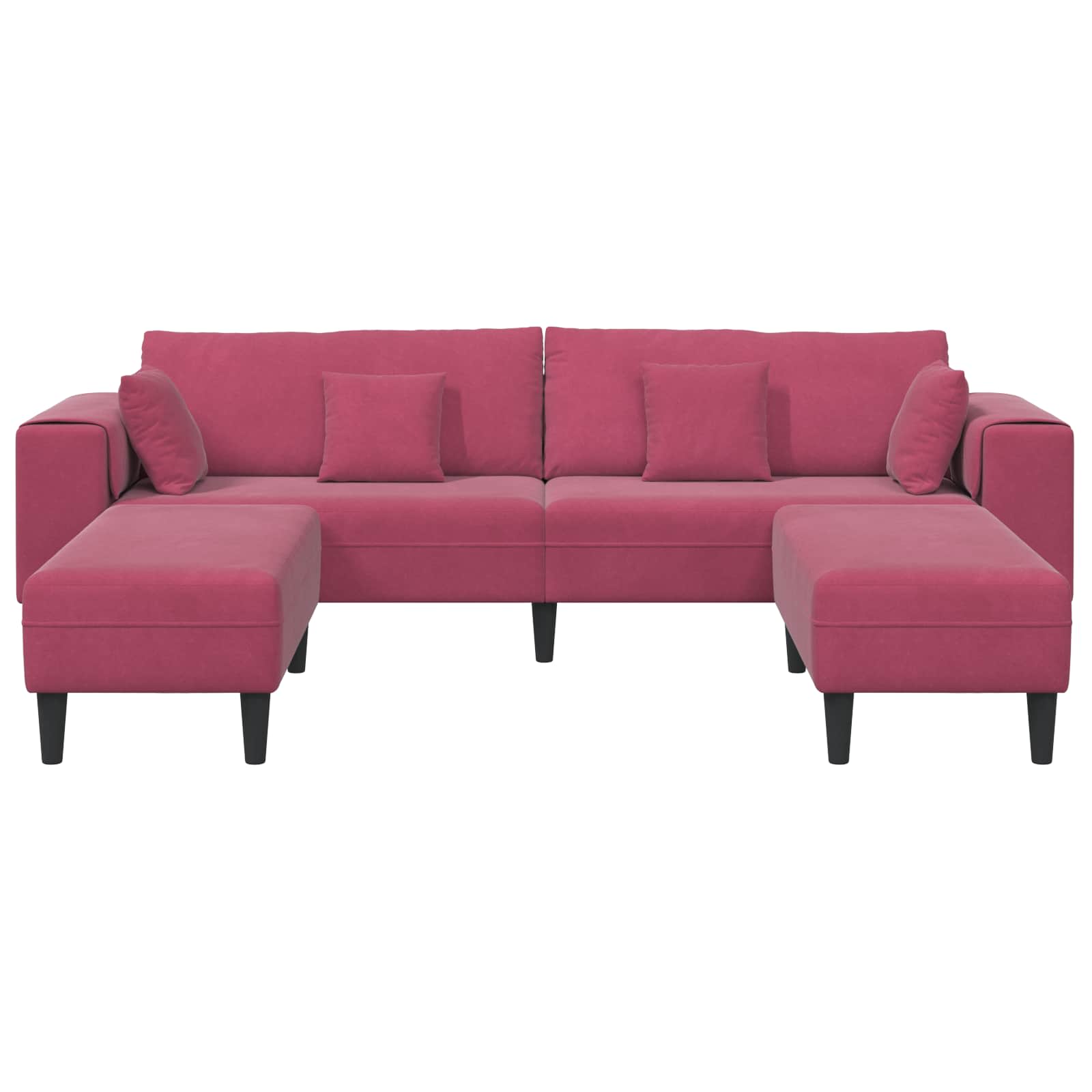 Divano con cuscino 3 pcs Rosso Vino Velluto