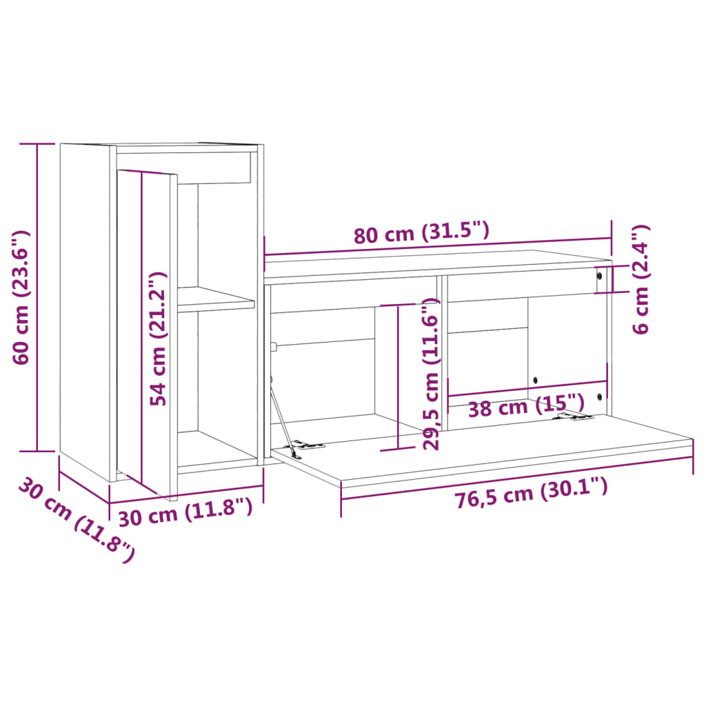 - 1 mobile TV: 80 x 30 x 35 cm (L x P x A)