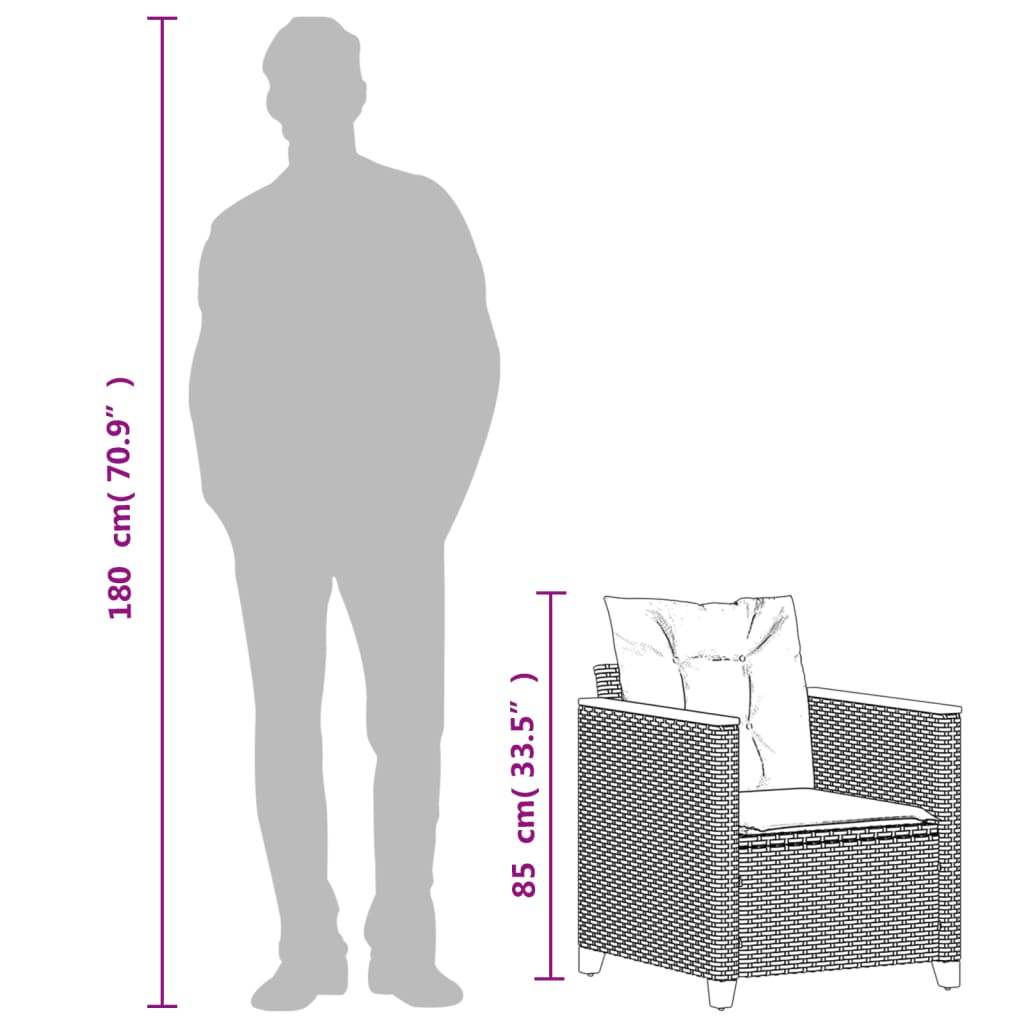 Poltrona da Giardino con Cuscini in Polyrattan Nero