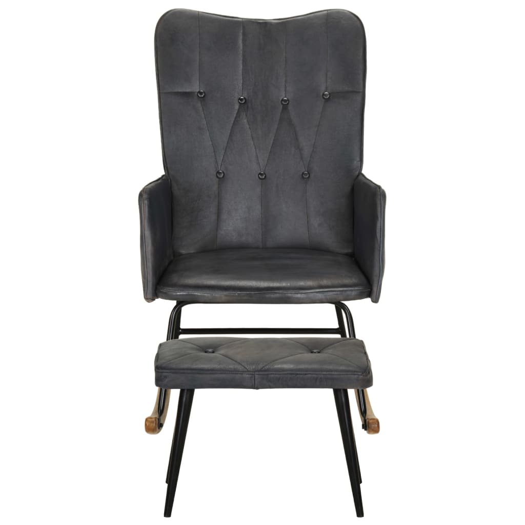 Sedia a Dondolo con Poggiapiedi Grigio in Vera Pelle