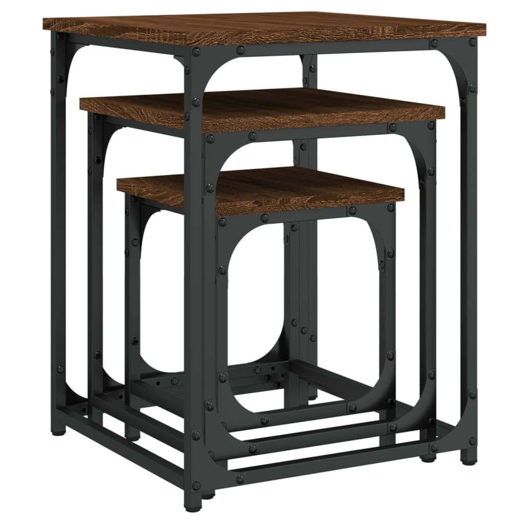 Tavolini Impilabili 3 pz Rovere Marrone in Legno Multistrato